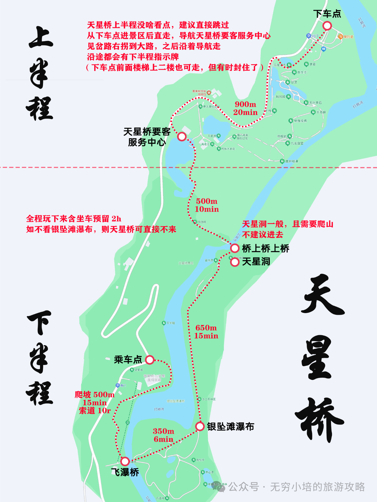 天星桥景区用时6小时,可以玩遍景区的景点,再给足休息时间,景区长时间步行还是挺累人的;