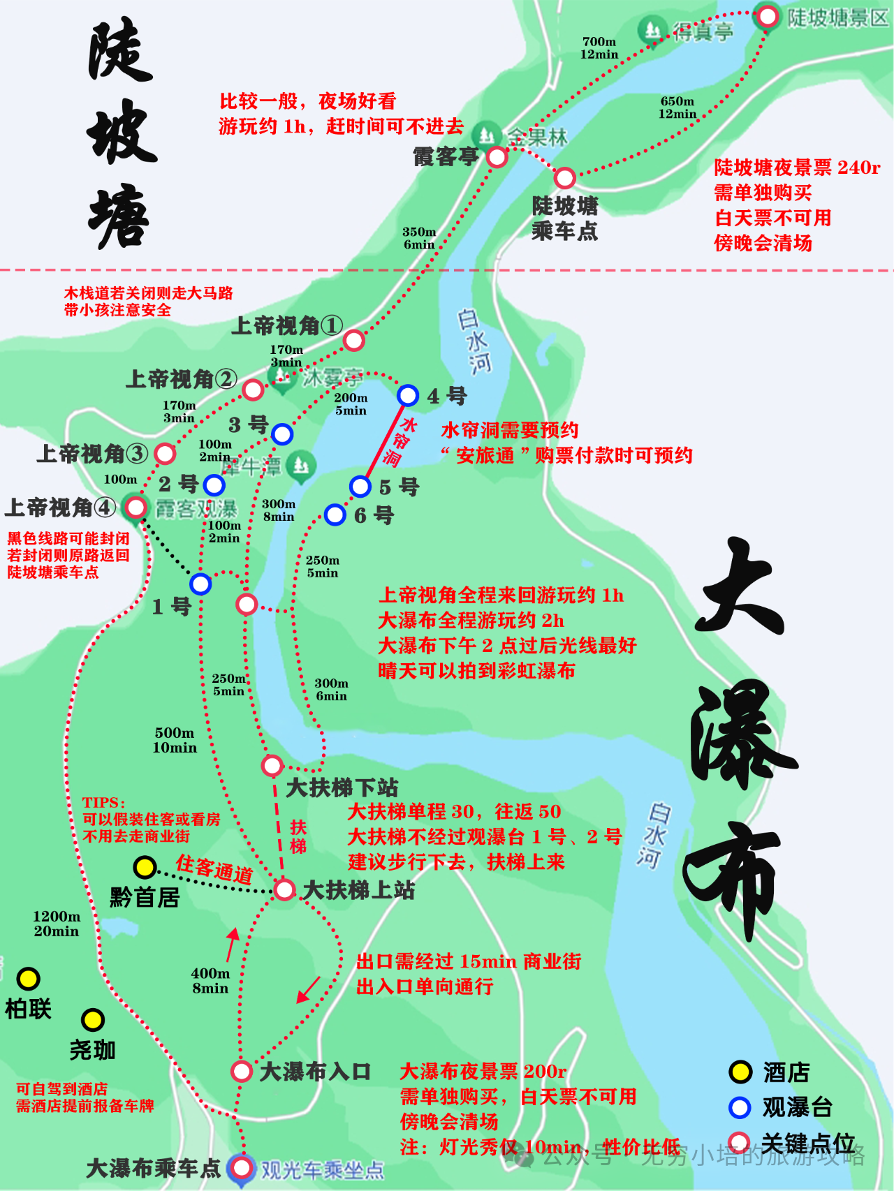 大瀑布景区用时6-8小时,可以走小众的半边街路线,时间可以花在拍摄或休憩上;